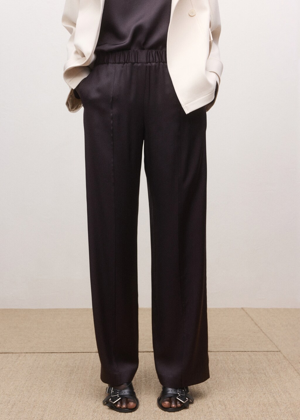 Conception fluide. Coupe droite. Design long. Taille mi-haute. Taille élastiquée. Sans fermeture. Collection Selection.