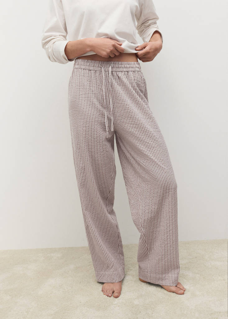 Pack de t-shirt et pantalon de pyjama. 100 % coton. Coupe droite. Design long. Manche longue. Motif à rayures. Col rond. Taille élastiquée. Cordon réglable. Disponible en plusieurs couleurs.
