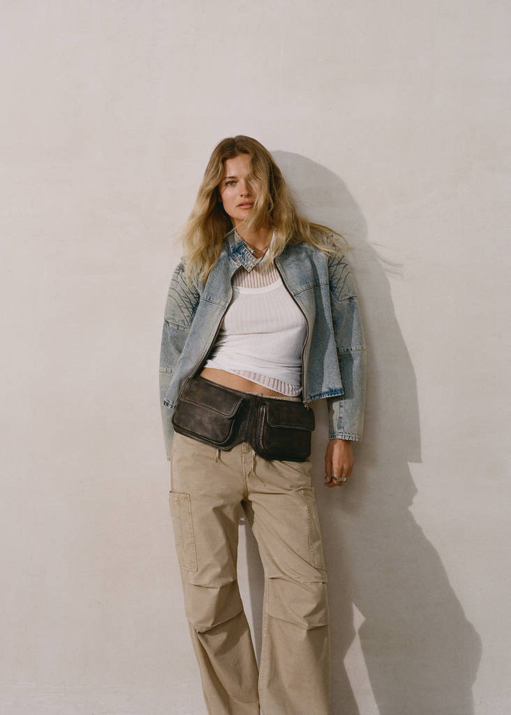 100 % cuir bovin. Effet usé. Grande taille. Deux compartiments. Fermoir magnétique à l’intérieur. Fermeture à boucle. Doublure. Saison des festivals