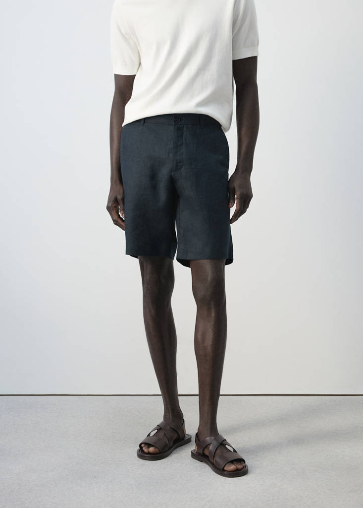 Fabriqué à partir d’un tissu 100 % lin, ce modèle ajusté présente une taille normale et une coupe ajustée. Il comprend des passants de ceinture, une fermeture à double boutonnage et zip, ainsi que des poches avant et arrière. Avec le thème SMART ETHEREAL, le mannequin mesure 190 cm et porte une taille 42