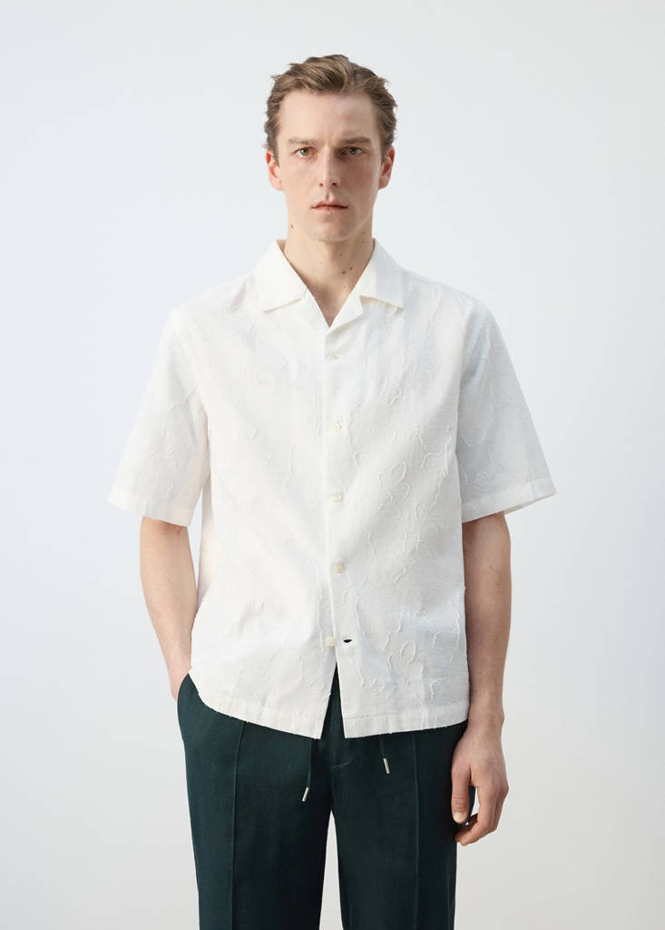 Regular-fit. Tissu mélange de coton et de lin. Col bowling. Manches courtes. Fermeture à boutons. Ourlet droit