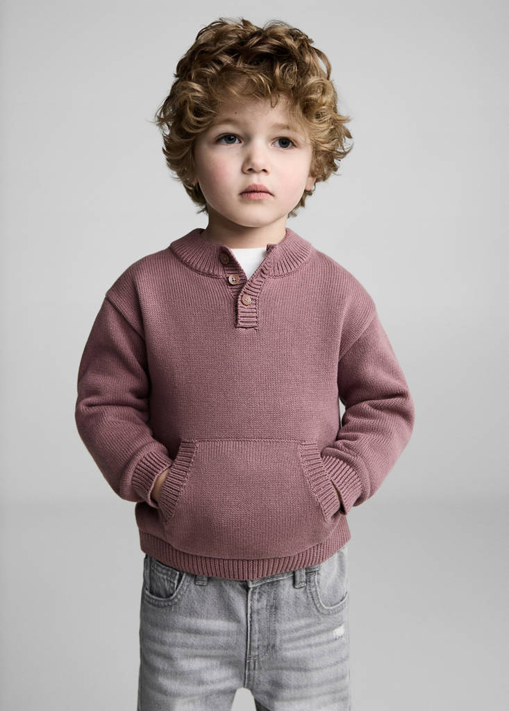 100% Cotton. Long sleeves. Rounded neck with button fastening. Pouch pocket. Ribbed collar, cuffs and hem
