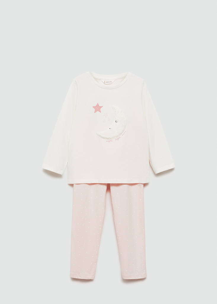 T-shirt and pyjama trousers set. Long design. Moon pattern. Straight design. Round neck. Long sleeves. Elasticated waistband
