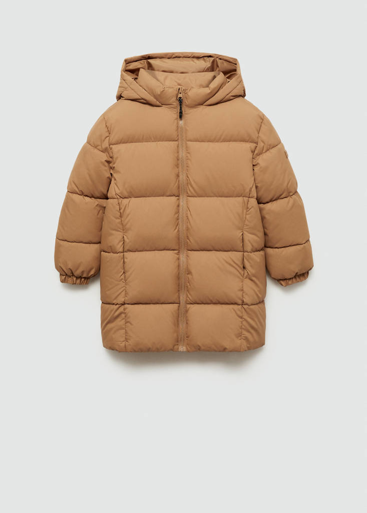 Quilted design. Straight design. Long design. Faux shearling interior. High neck. Long sleeves. Hood. Label for personal data. Zip fastening