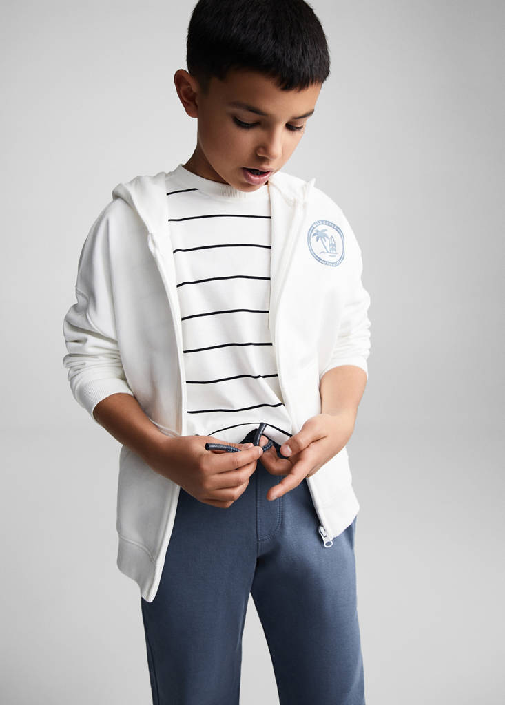 Jogger design. Elasticated waistband. Long design. Cargo design. Two pockets with flaps. Welt pocket. Drawstring closure. Felt fabric