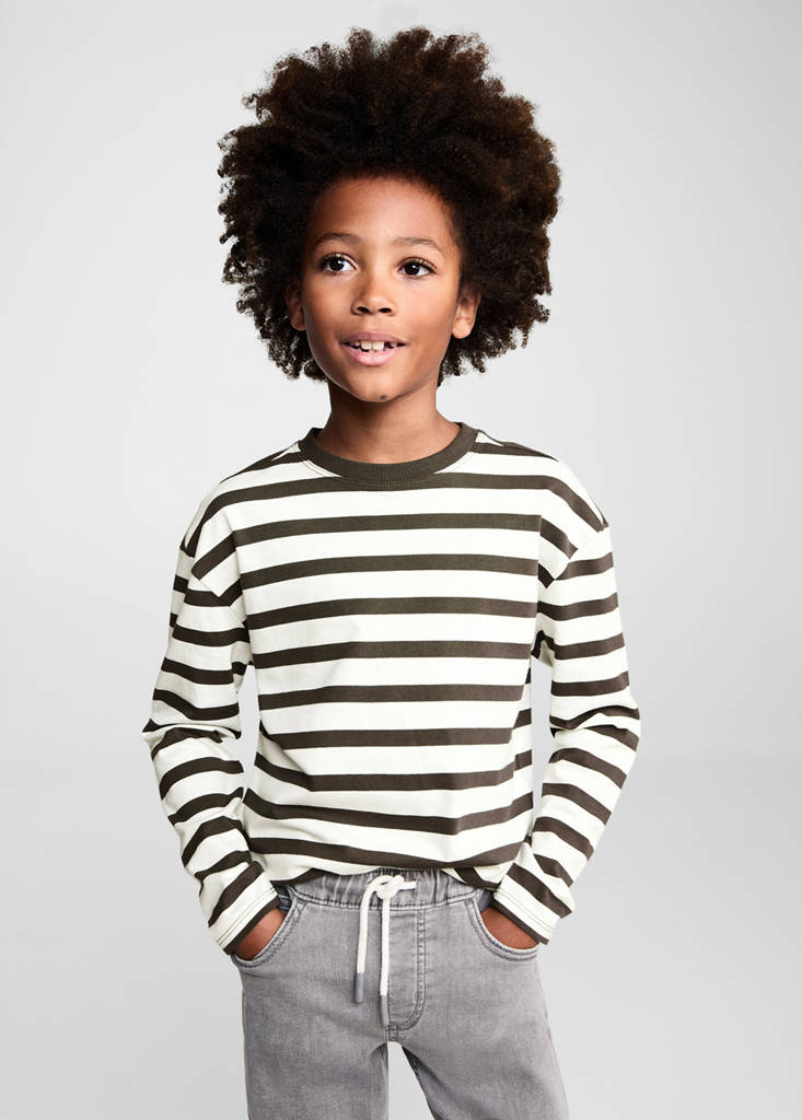 Back to school collection. Straight design. Round neck. Long sleeves. Long design. Striped design