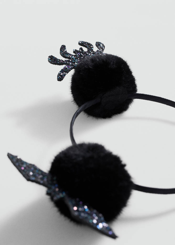 Halloween Collection. Bat design. Decorative pompoms. Decorated with glitter