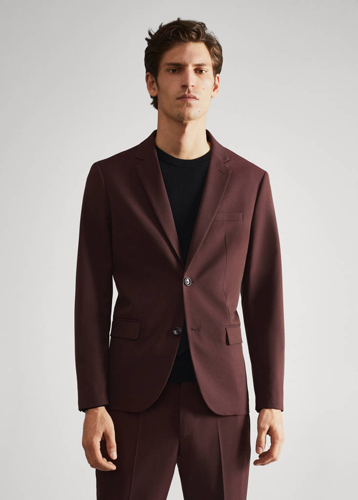 Super slim fit. Short design. Lapel with notch. Welt pockets. Two pockets with flaps on the front. Long buttoned sleeve. Button up. Back slit. Inner lining. Inner pockets. The model is 187 cm tall and is wearing a size 50. Tailoring collection