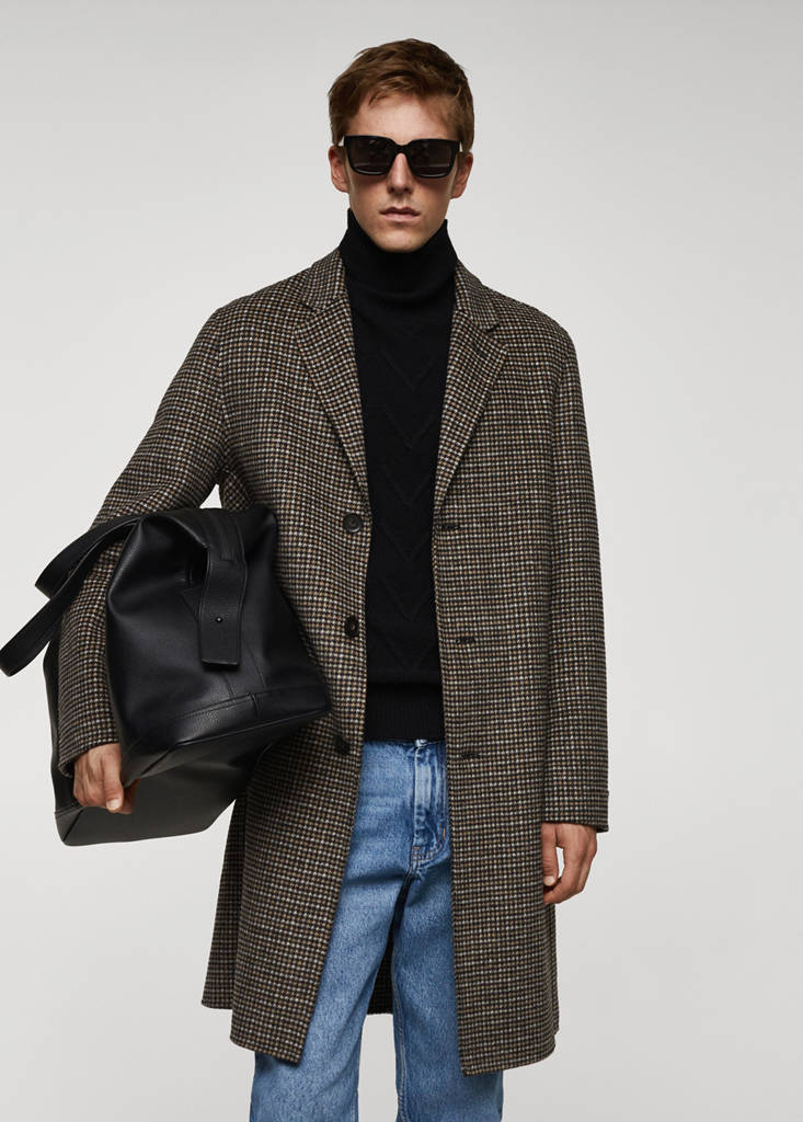 Wool mix fabric. Micro houndstooth print. Straight design. Notched lapel collar. Long sleeves. Partial lining. Back vent at the hem. Front closure with buttons