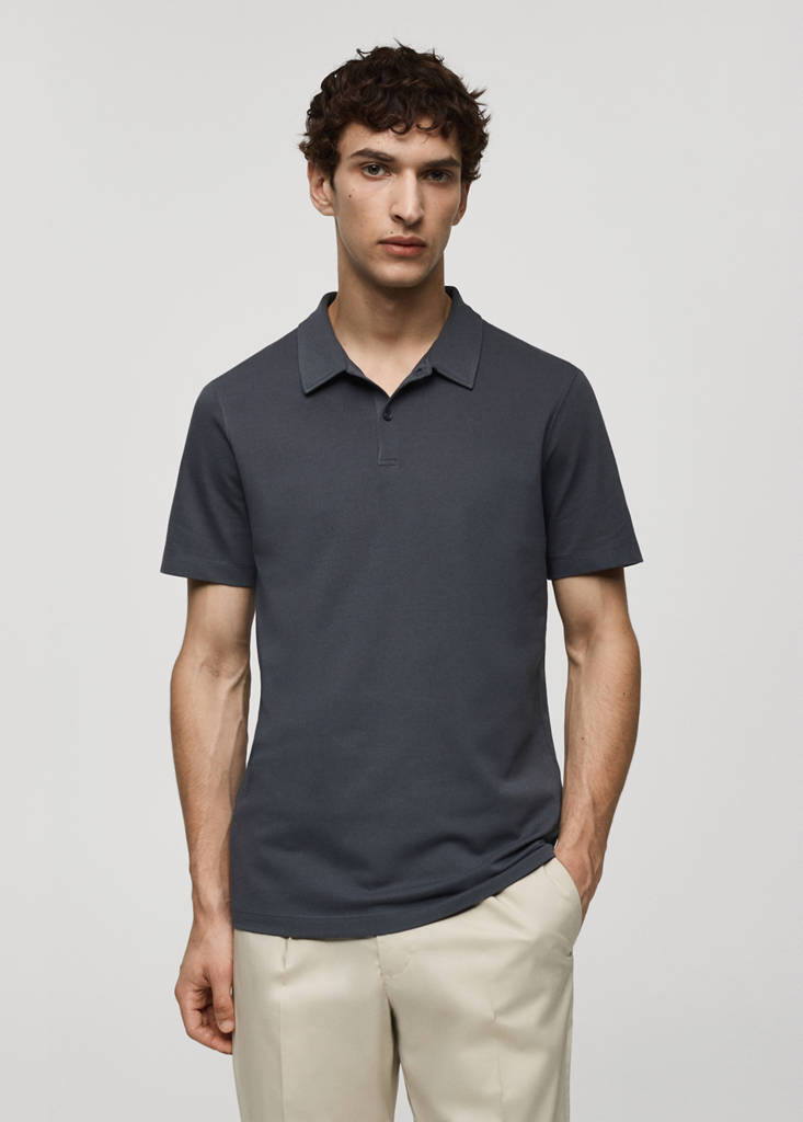 Khaki is an online exclusive. Slim fit. Cotton piquet fabric. Polo collar. Button fastening at the neck. Short sleeves. Straight hem. The colour brown is exclusive online. ESSENTIALS: Made to last. Cotton blend fabric