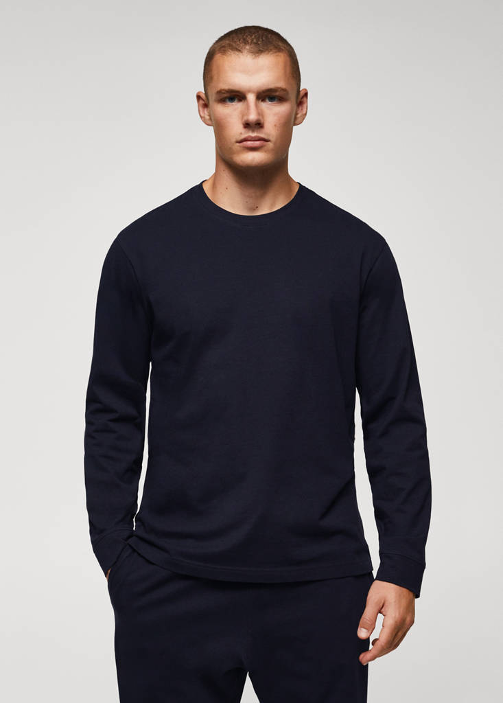 T-shirt and pyjama trousers set. 100% Cotton. Regular fit. Long-sleeved t-shirt. Round neck. Long sleeves. Elastic ribbed endings. Joggers. Elastic waist with drawstring. Two front pockets. Includes a bag to store the garments