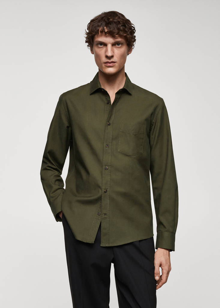 Brushed cotton twill shirtCurrent price [US$ 69.99 ]US$ 69.99Select a colourKhakiThe model is wearing size M and is 188cm tall.Select your sizeXSSMLXLXXLDimensionsAdd to WishlistSee lookFree delivery to storeRegular fit. Cotton and lyocell blend fabric. Brushed cotton twill. Shirt collar. Patch pocket on the chest. Long sleeves with buttoned cuffs. Rounded baseDetails, composition and careStore availability