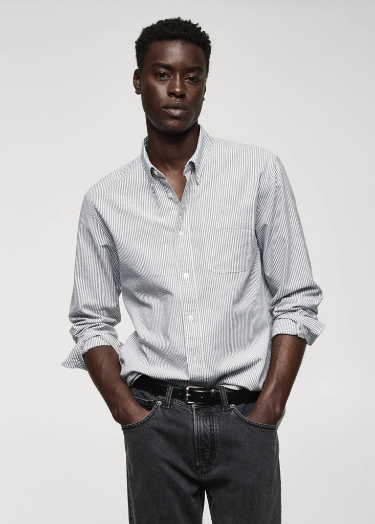ESSENTIALS: Made to last. Regular fit. Bengal stripe design. American button-down collar. Patch pocket on the chest. Long sleeves with buttoned cuffs. The purple models is an online exclusive. Rounded base. 100% cotton fabric. Front closure with buttons