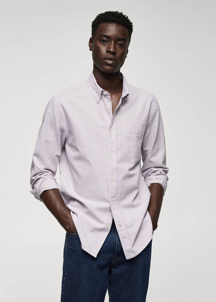 ESSENTIALS: Made to last. Regular fit. Bengal stripe design. American button-down collar. Patch pocket on the chest. Long sleeves with buttoned cuffs. The purple models is an online exclusive. Rounded base. 100% cotton fabric. Front closure with buttons
