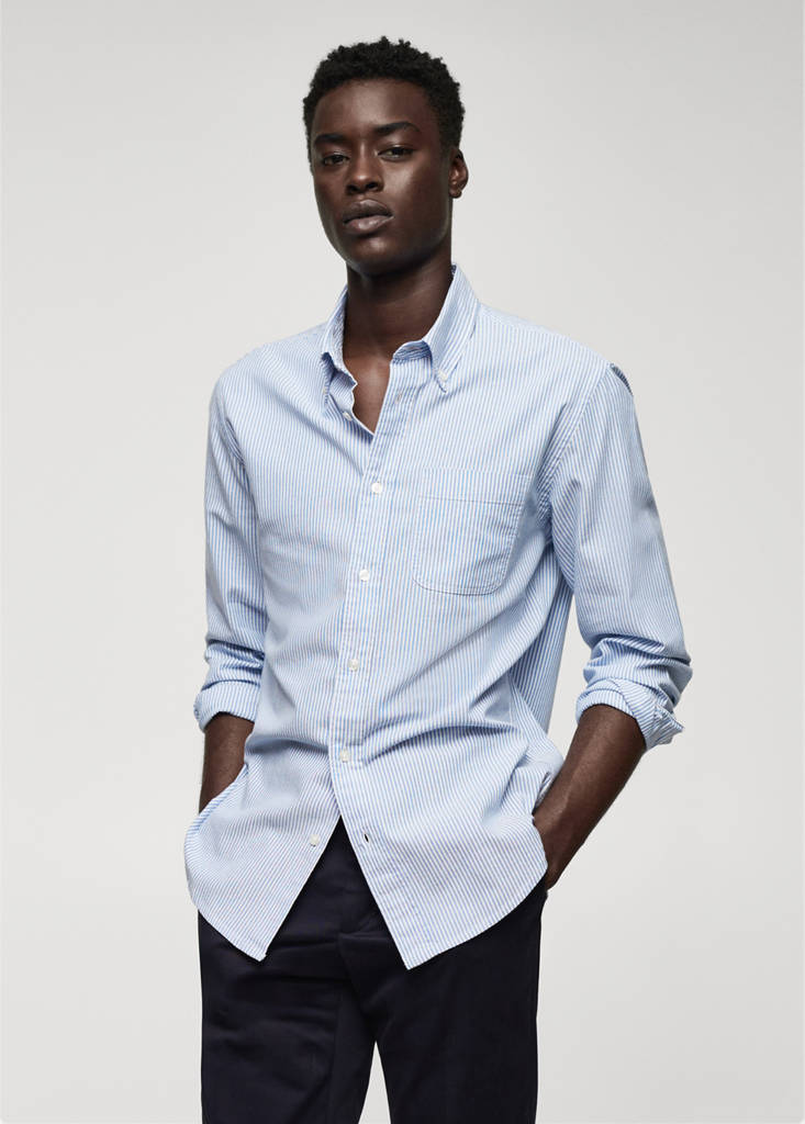 ESSENTIALS: Made to last. Regular fit. Bengal stripe design. American button-down collar. Patch pocket on the chest. Long sleeves with buttoned cuffs. The purple models is an online exclusive. Rounded base. 100% cotton fabric. Front closure with buttons