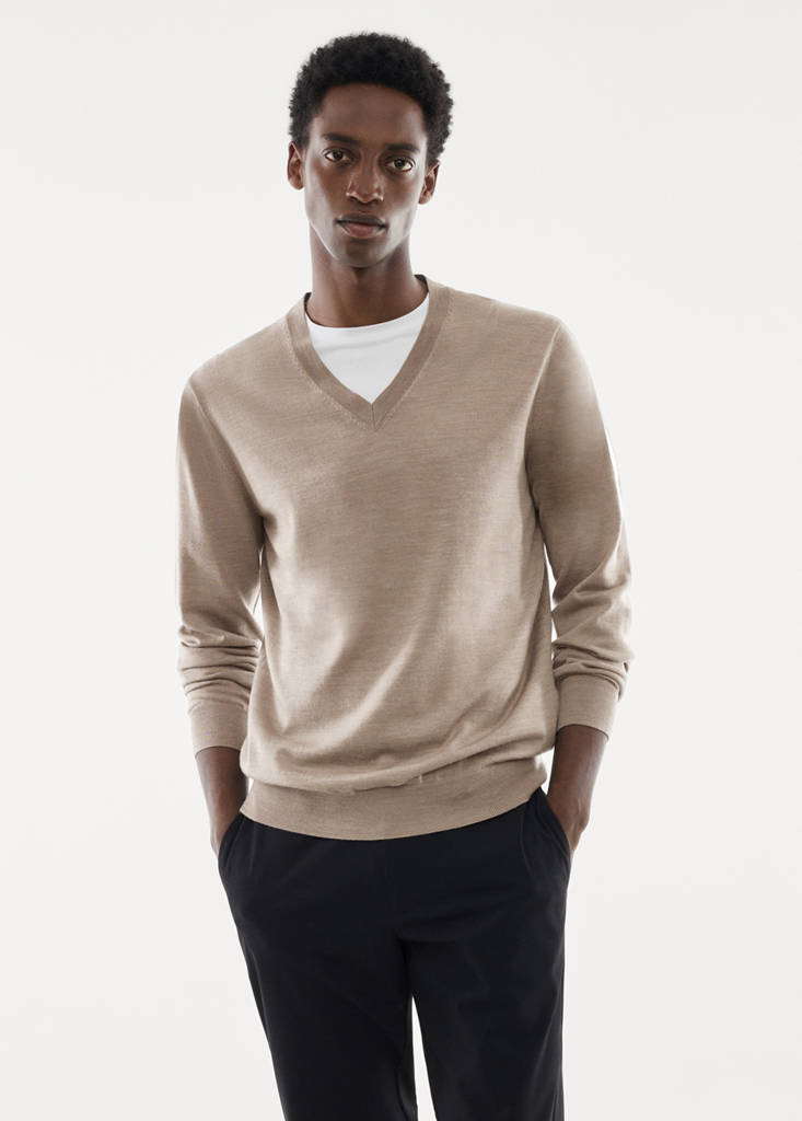 Performance Collection, 100% merino wool, regular fit, fine knit fabric, v-neck, long sleeve with elastic cuffs, straight hem, the model is 190 cm tall and is wearing a size M, easy-care fabric, thermoregulating: This fabric offers optimal breathability to keep you at a stable temperature.