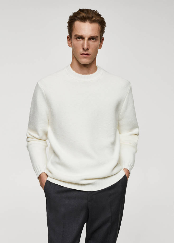 Knitted sweater with ribbed detailsInitial price struck through [US$ 99.99 ]US$ 99.99Current price [US$ 70.99 ]US$ 70.99-29%Select a colourOff WhiteThe model is wearing size M and is 185cm tall.Select your sizeSMLXLXXLDimensionsAdd to WishlistSee lookFree delivery to storeRegular fit. Midpoint. Round neck. Long sleeves. Straight hem. Contrast ribbed finishes on collar, sleeves and bottom hemDetails, composition and careStore availability