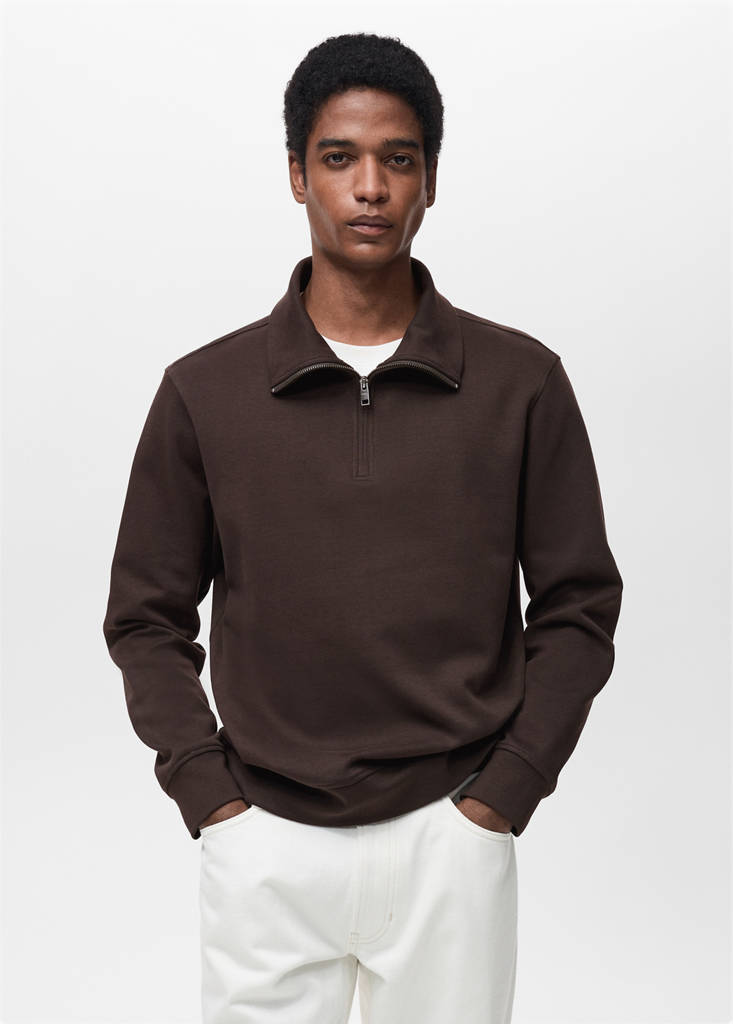 ESSENTIALS: Made to last. Cotton blend fabric. Regular fit. Perkins collar with zip closure. Ribbed cuffs and hem. Straight hem. The colour brown is exclusive online