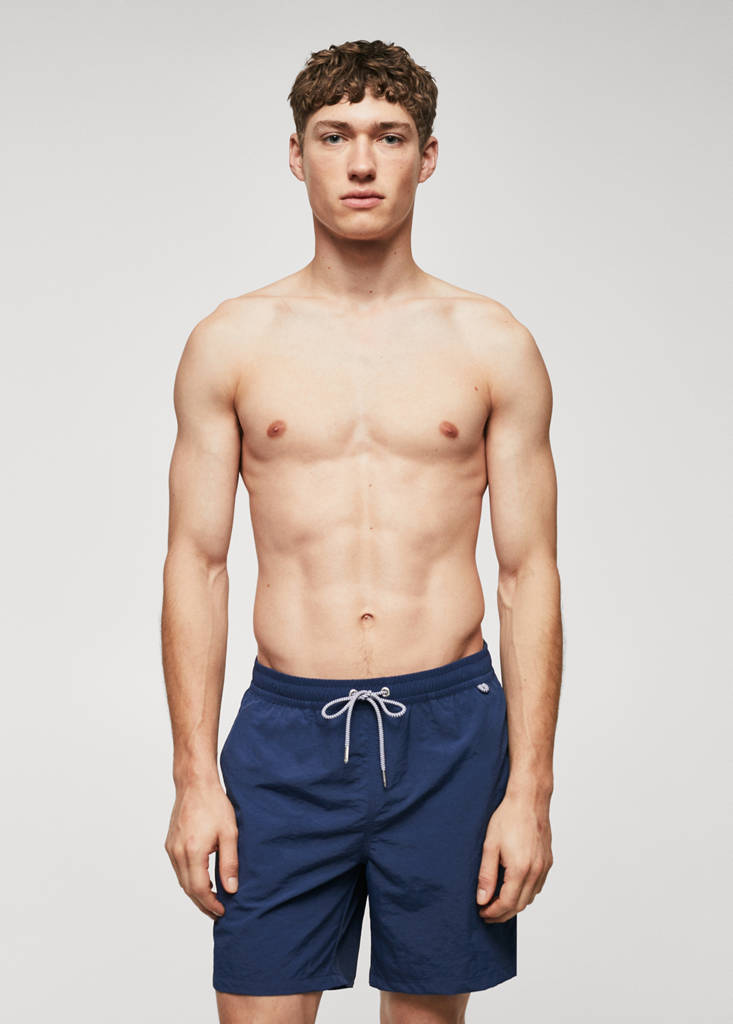 Medium design. Polyester fabric. Elastic waist with adjustable drawstring. Two side pockets. Back patch pocket with Velcro. Inner pocket. Inner lining. The model is 190 cm tall and is wearing a size M