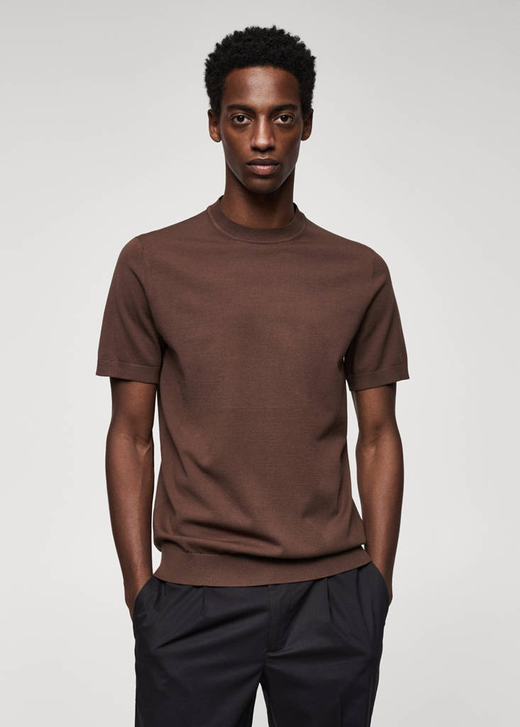 Fine-knit T-shirtCurrent price [US$ 45.99 ]US$ 45.99Select a colourChocolateThe model is wearing size M and is 189cm tall.Select your sizeSMLXLXXLDimensionsAdd to WishlistSee lookFree delivery to storeFine knit fabric. Straight-fit. Short sleeve. Rounded neck. Straight hem. Elastic ribbed endings. Basics Collection. Antoine Griezmann CampaignDetails, composition and careStore availability