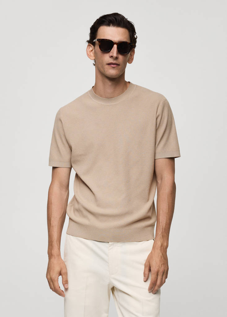 Structured knitted t-shirtInitial price struck through [US$ 59.99 ]US$ 59.99Current price [US$ 47.99 ]US$ 47.99-20%Select a colourLight/Pastel GreySelect your sizeSMLXLXXLDimensionsAdd to WishlistSee lookFree delivery to storeFine-knit fabric with micro-structure. Straight design. Round neck. Short sleeves. Straight hem. Untrimmed hemDetails, composition and careStore availability