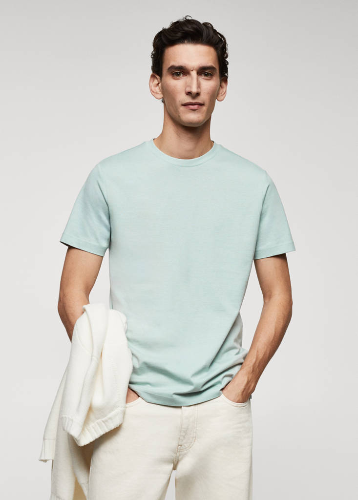 Essential cotton-blend T-shirtCurrent price [US$ 17.99 ]US$ 17.99Select a colourAqua GreenThe model is wearing size M and is 188cm tall.Select your sizeXSSMLXLXXLDimensionsAdd to WishlistSee lookFree delivery to storeThe colour brown is exclusive online. Slim fit. Round neck. Short sleeves. Straight hem. 100% cotton fabricDetails, composition and careStore availability