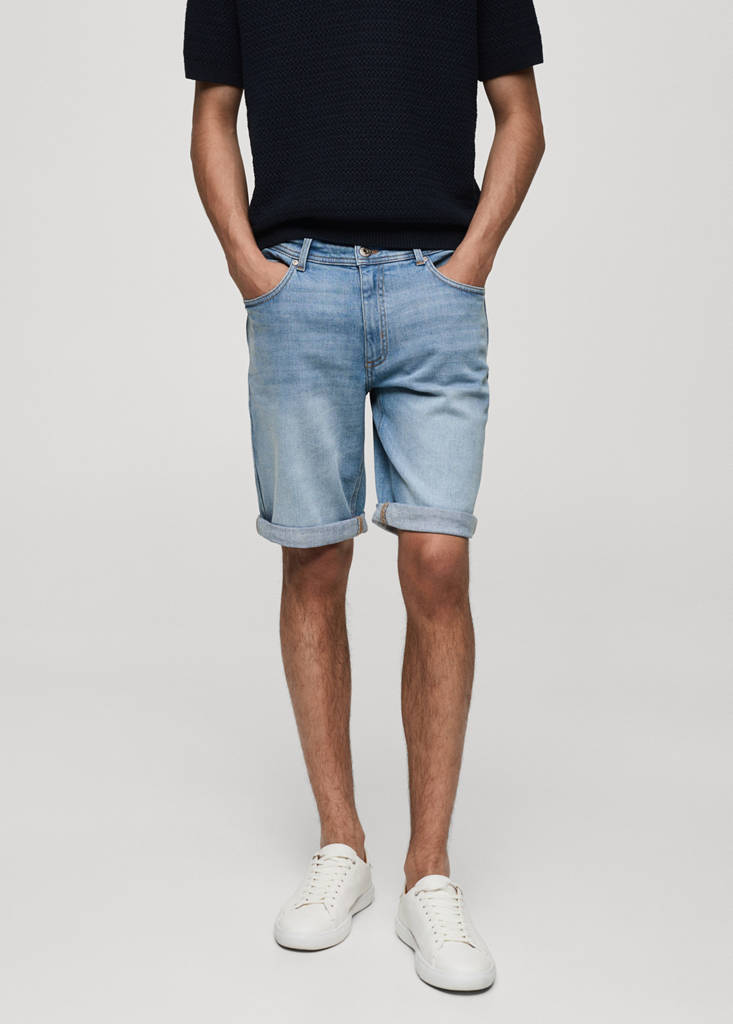 Slim-fit denim bermuda shortsCurrent price [US$ 49.99 ]US$ 49.99Select a colourMedium BlueThe model is wearing size 44 and is 183cm tall.Select your size363840424446DimensionsAdd to WishlistSee lookFree delivery to storeSlim fit. Denim-style cotton fabric. Belt loops. Zip and button fastening. Two side pockets. Coin pocket. Patch pockets on the backDetails, composition and careStore availability