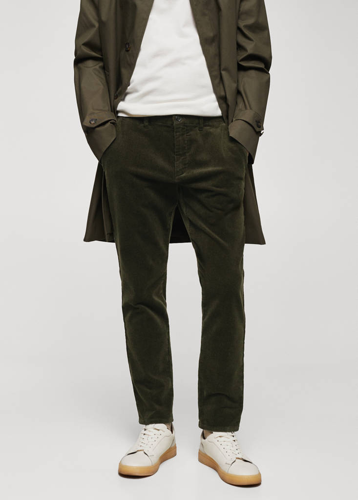 Slim fit. Cotton blend fabric. Zip and button fastening. Belt loops. Waist with adjustable inner cord. Two front pockets. Two welt pockets with button at the back