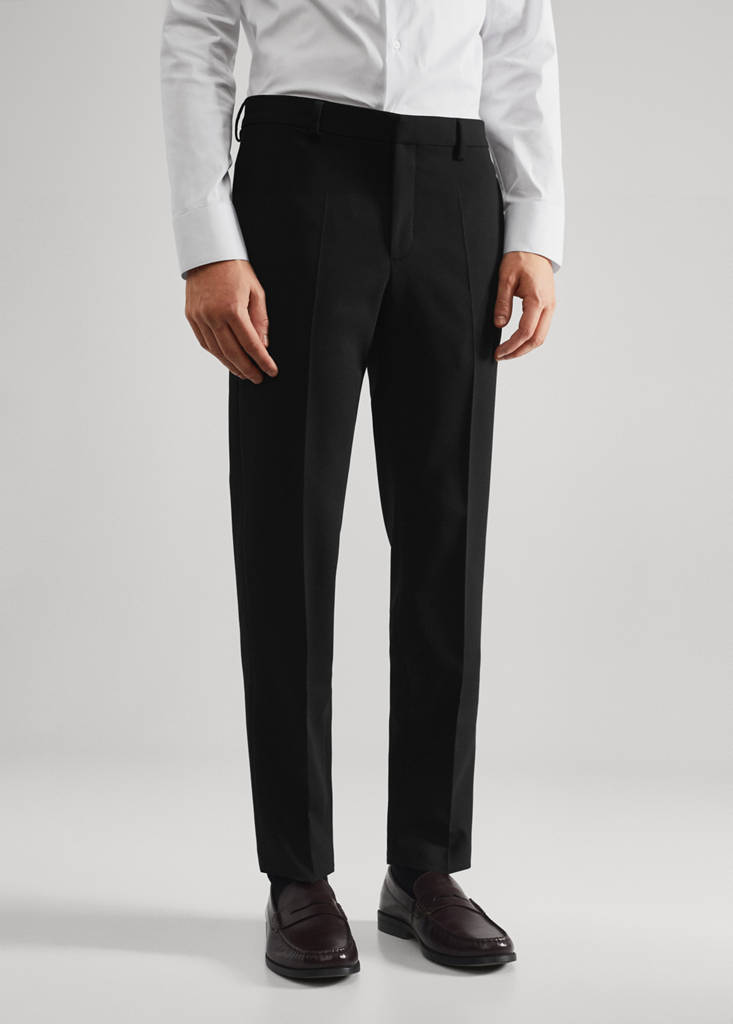 Super slim fit suit trousersCurrent price [US$ 89.99 ]US$ 89.99Select a colourBlackSelect your size363840424446DimensionsAdd to WishlistSee lookFree delivery to storeSuper slim fit. Belt loops. Two side pockets. Ticket pocket. Two welt pockets at the back. Concealed button, hook and zip fastening. Tailoring collection. Tailored lineDetails, composition and careStore availability