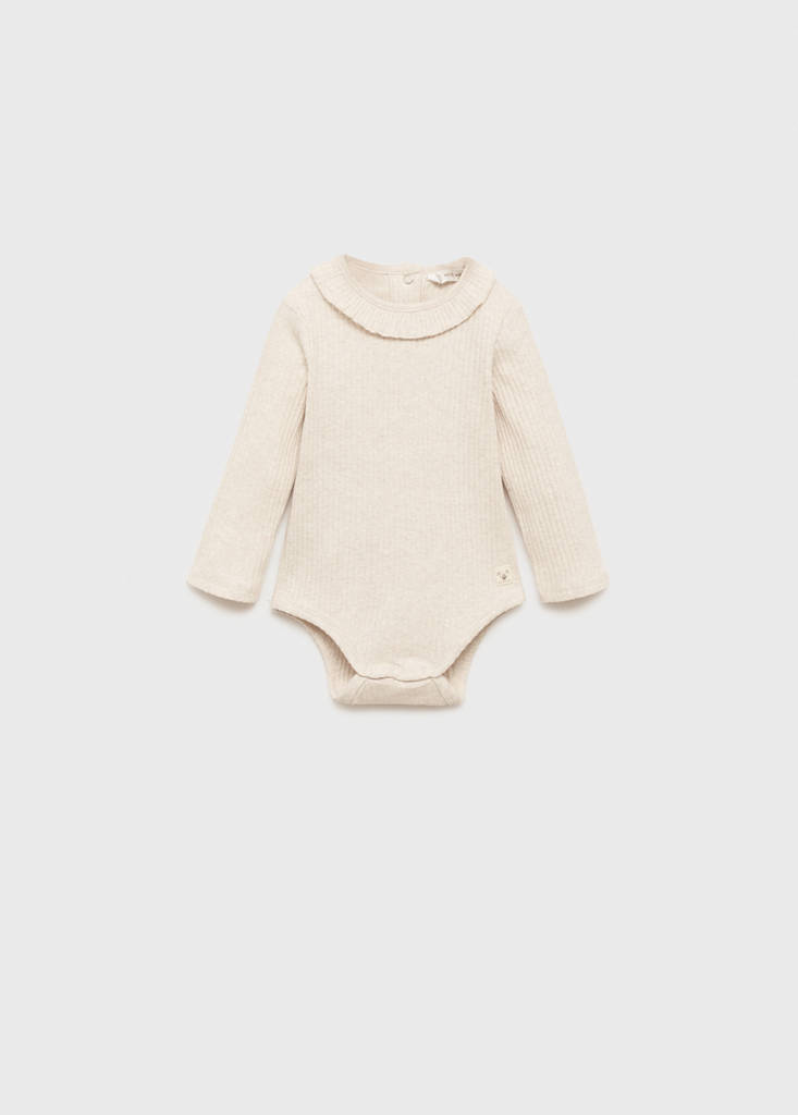 100% Cotton. Straight design. Ruffle-neck bodysuit. Press-stud fastening at the back. Double side slit at the hem with snap button closure. Round neck. Long sleeves. Set available as total look