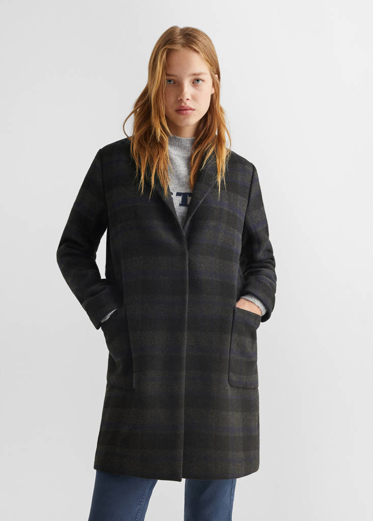Straight design. Medium. Lining only. Two pockets with flaps. Shirt collar. Long sleeves. Front closure