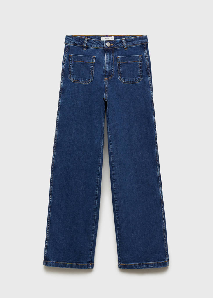 Denim-style cotton fabric. Long design. Two patch pockets at the front. Zip and button fastening. Straight-fit