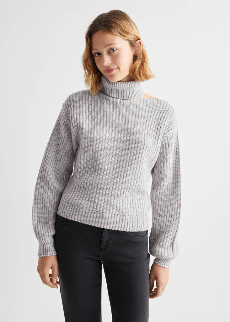 Party, ceremony and communion collection. Chunky knit fabric. Shiny effect fabric. Straight design. Cut-out details on the shoulder. High neck. No Fastening. Long sleeves