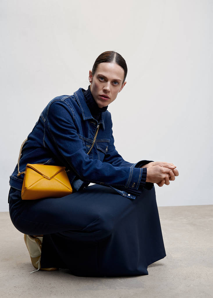 Faux leather. Small. Geometric design. Short strap. Long detachable chain strap. Dual inner compartment. Magnetic metallic fastening. Inner lining. Party and events collection