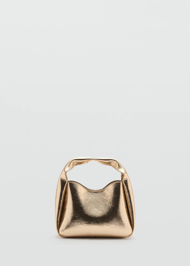 Metallic. Medium. Handle. Long detachable chain strap. Magnetic button closure. Inner lining