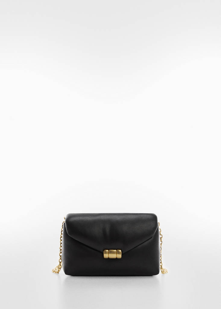 Small size. Crossbody bag. Quilted design. Long detachable chain strap. Dual compartment. Flap closure with magnetic button. Inner lining
