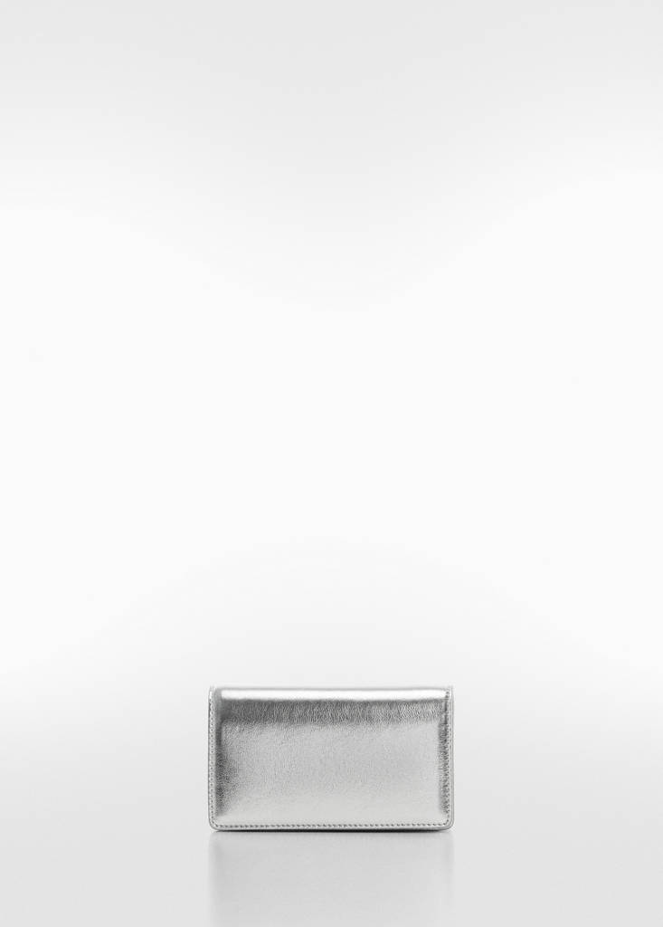 Flap chain bagCurrent price [US$ 35.99 ]US$ 35.99Select a colourSilverSelect your sizeOne sizeAdd to WishlistSee lookFree delivery to storeSmall size. Long detachable chain strap. Removable strap. Flap closure with magnetic button. Inner lining. Metallic finish17.0x9.0x5.0 cm (Length x Height x Width)Details, composition and careStore availability