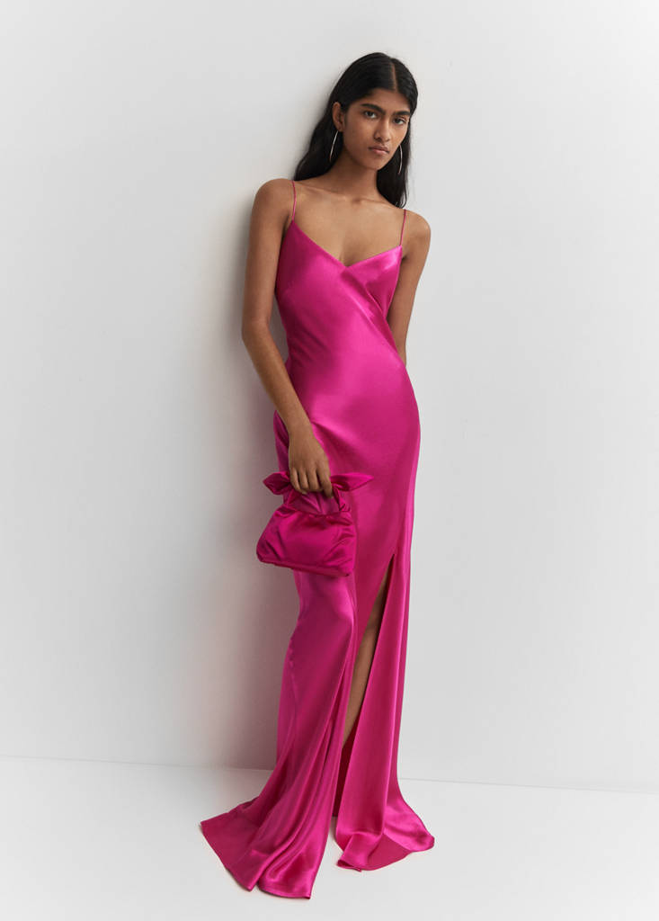 Satin fabric. Small size. Long detachable chain strap. Inside magnet fastening. Decorative bow. Inner lining. Party, ceremony and communion collection