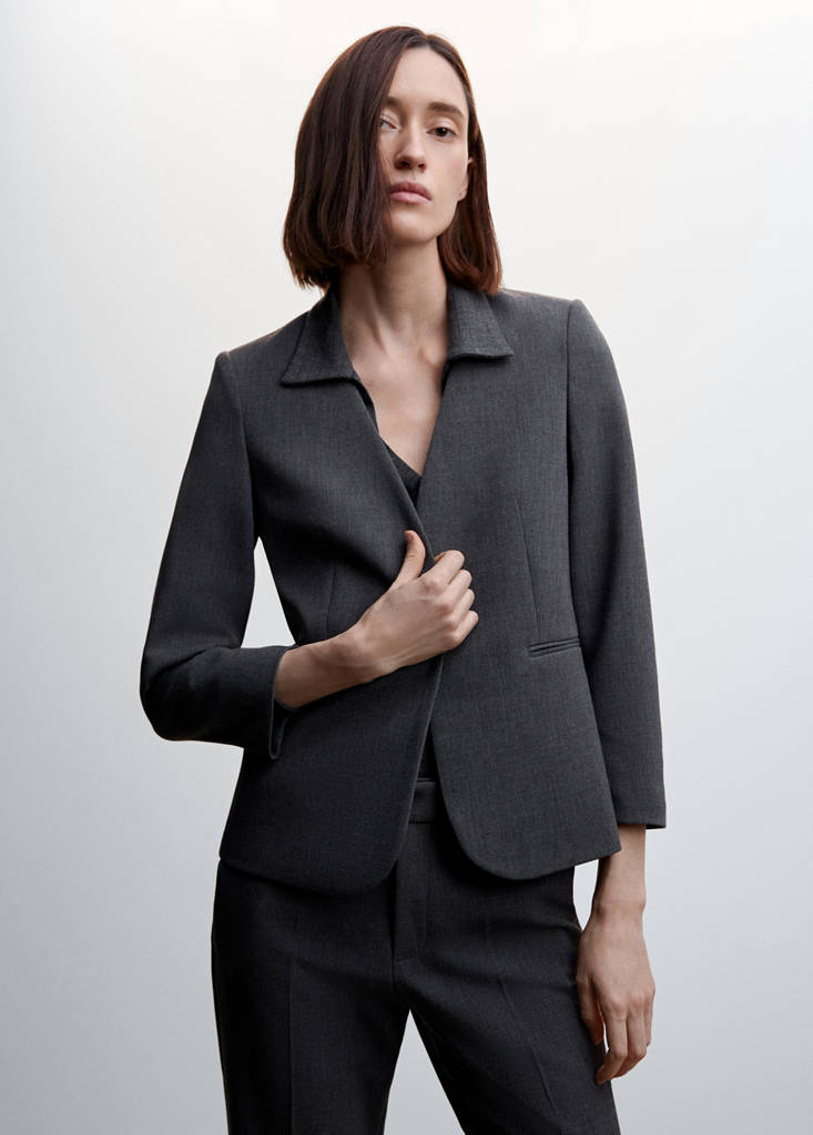Collarless suit jacket