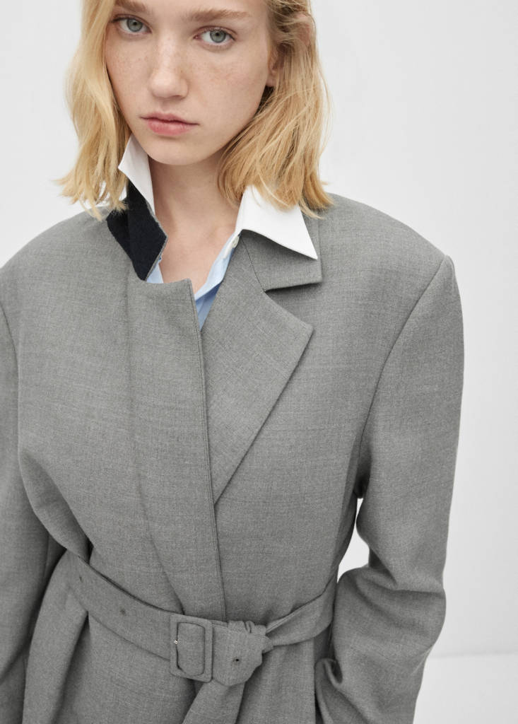 Long design. Long sleeves. Belt buckle fastening. Inner lining. Selection Collection. Wool mix fabric. Lapel-collar V-neck collar. Lapel with notch. Wrap design. Straight design
