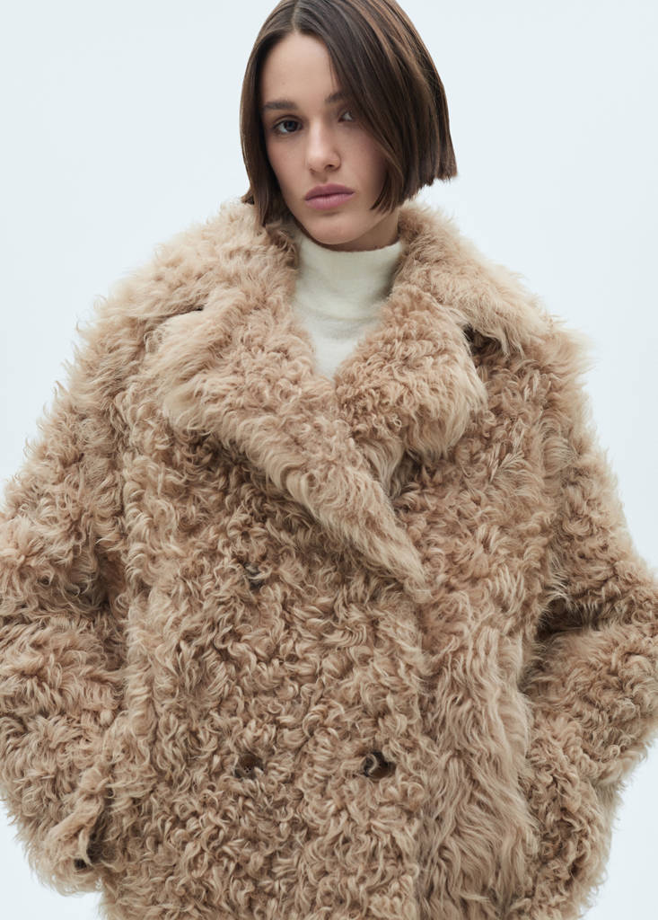 Long sleeves. Straight design. Front closure with crossed buttons. Selection Collection. 100% sheepskin. Shearling-lined design. Reversible design. Short design. Lapel-collar V-neck collar. Lapel with notch. Fur-effect lining