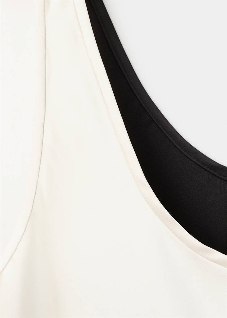 Satin fabric. Stretch fabric. Fitted design. Midi design. Two-tone design. Round neck. Sleeveless. No Fastening