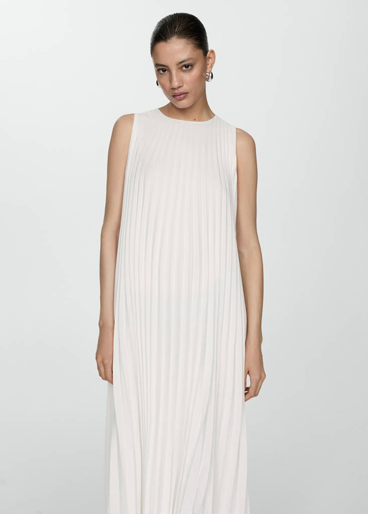 Pleated A-line dressCurrent price [US$ 99.99 ]US$ 99.99Select a colourWhiteThe model is wearing size S and is 180cm tall.Select your sizeXSSMLXLDimensionsAdd to WishlistSee lookFree delivery to storeFluid fabric. Oversized design. Long design. A-line design. Pleated design. Round neck. Sleeveless. Button closure at the back. Inner liningDetails, composition and careStore availability