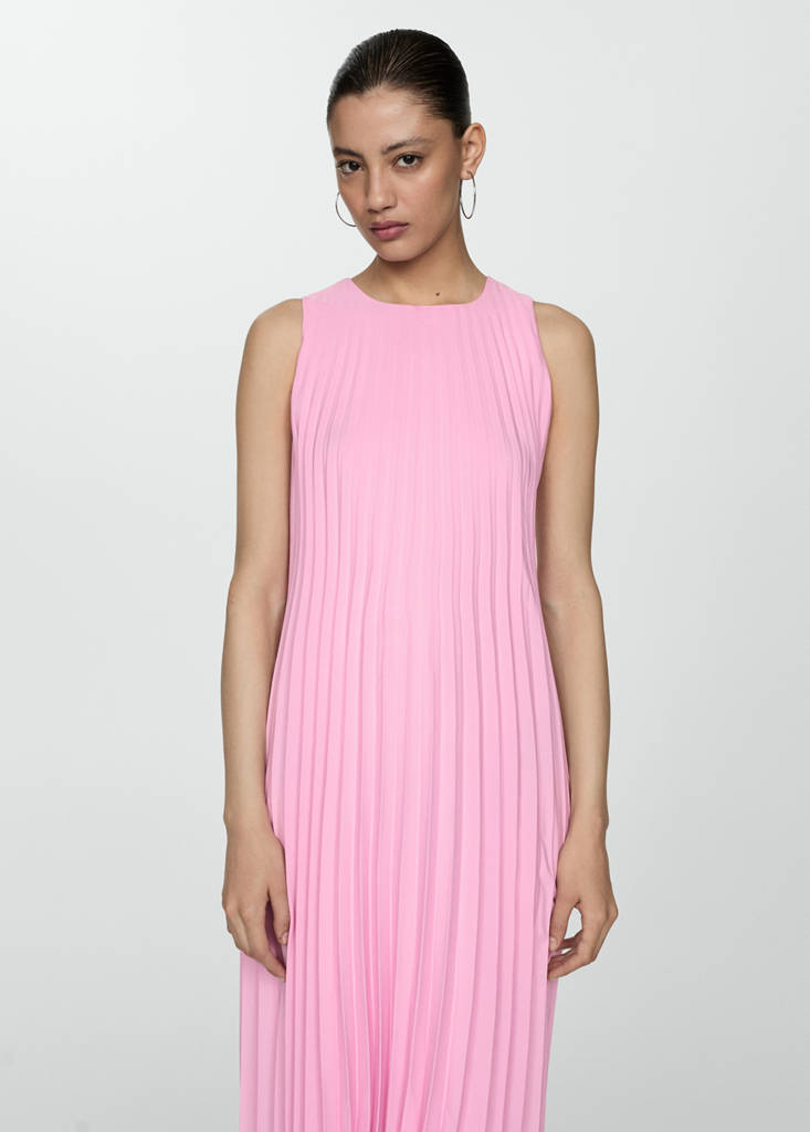 Pleated A-line dressCurrent price [US$ 99.99 ]US$ 99.99Select a colourPinkThe model is wearing size S and is 180cm tall.Select your sizeXSSMLXLDimensionsAdd to WishlistSee lookFree delivery to storeFluid fabric. Oversized design. Long design. A-line design. Pleated design. Round neck. Sleeveless. Button closure at the back. Inner liningDetails, composition and careStore availability