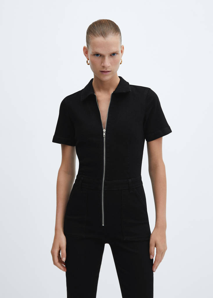 Denim zipper jumpsuit