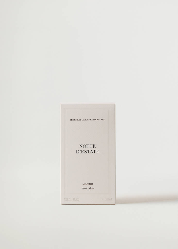 Mémoires de la Méditerranée. 100 ml fragance. Boat-neck linen dress. Slim-fit lyocell pleated trousers. Crochet mini-skirt with bow fastening. Short-sleeved crochet polo shirt. 100ml. Notte d'Estate, memory of a summer sunset. When the sun bids farewell to the day, sky and sea blush with warm tones and push a soft summer breeze that seduces your skin. Watery tones open this fragrance with apple and freesia delicately sweetened by cassis. A colourful heart of succulent peach and juicy raspberry is partnered with orange blossom for a sensual skin sensation. A softness that charmingly combines the warm curves of amber wood, musk and vanilla. Mémoires de la Méditerranée: a collection of six different fragrances, each representing exceptional places that our Mediterranean offers us