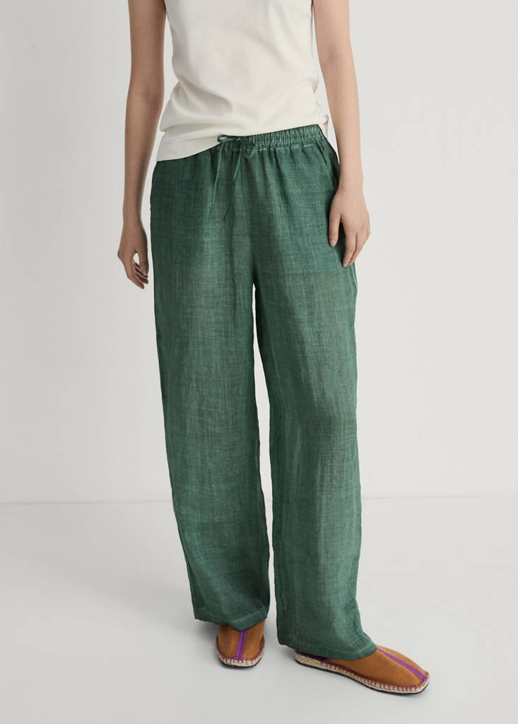 100% ramie. Long design. Two pockets. Adjustable drawstring. Provides comfort and freedom of movement. Available in different colours