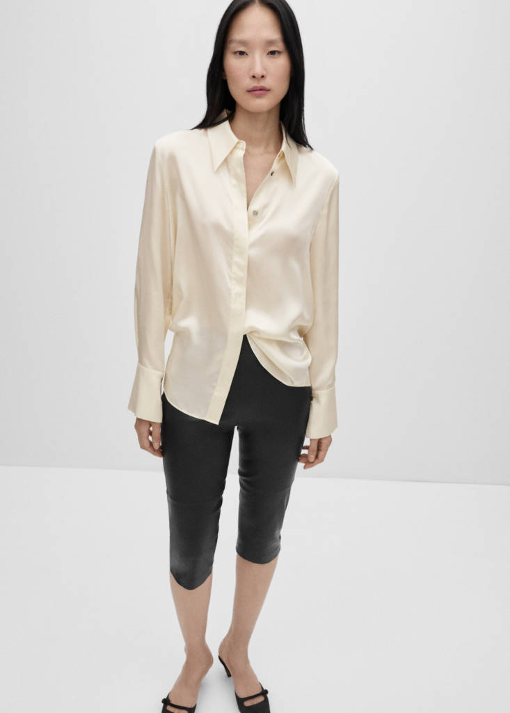 100% mulberry silk fabric. Straight design. Shirt collar. Long sleeves with buttoned cuffs. Front closure with buttons. Selection Collection