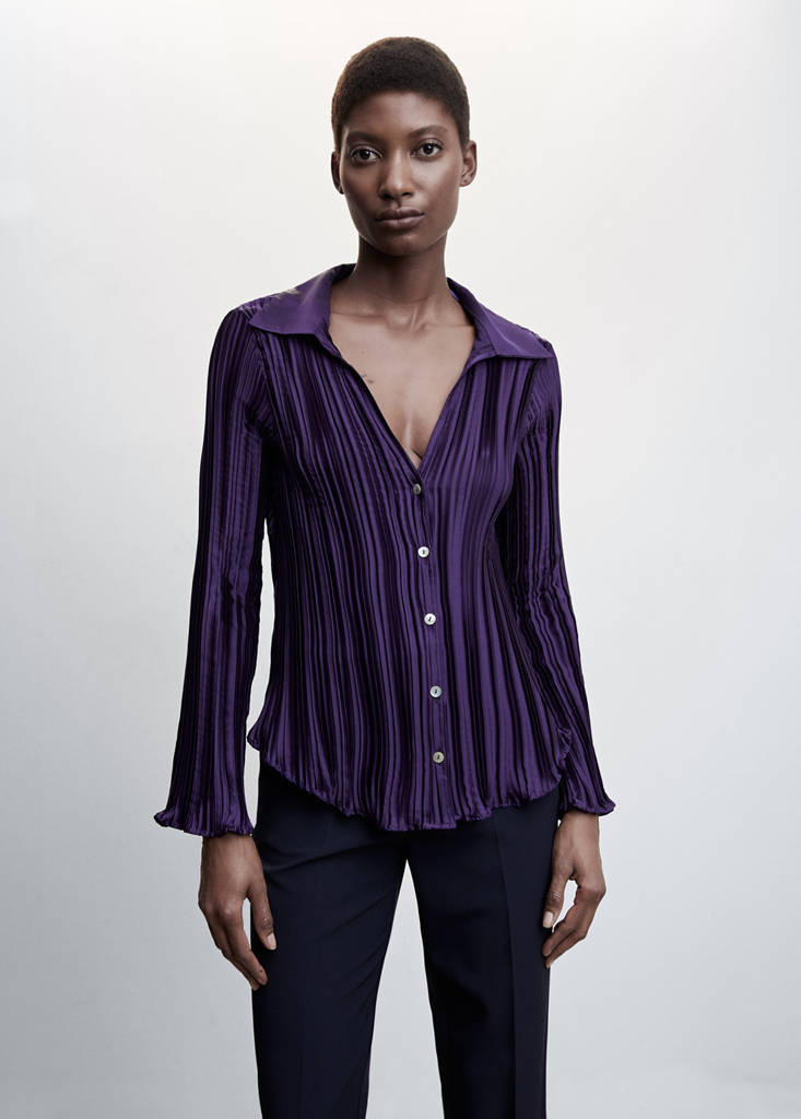 Satin pleated shirtCurrent price [US$ 69.99 ]US$ 69.99Select a colourDark NavyThe model is wearing size S and is 175cm tall.Select your sizeXXSXSSMLXLXXLDimensionsAdd to WishlistSee lookFree delivery to storeSatin. Flowy fabric. Pleated design. Fitted design. Shirt-style collar. Long sleeve. Button fastening on the front sectionDetails, composition and careStore availability