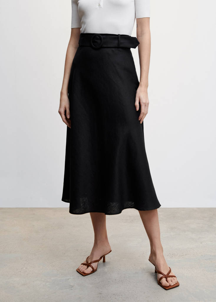 100% Linen. Midi design. Straight design. Adjustable belt. Loops. Frill on the bottom
